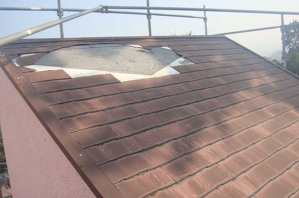 古い屋根材を撤去し新規に屋根材を葺き替える工事になります。