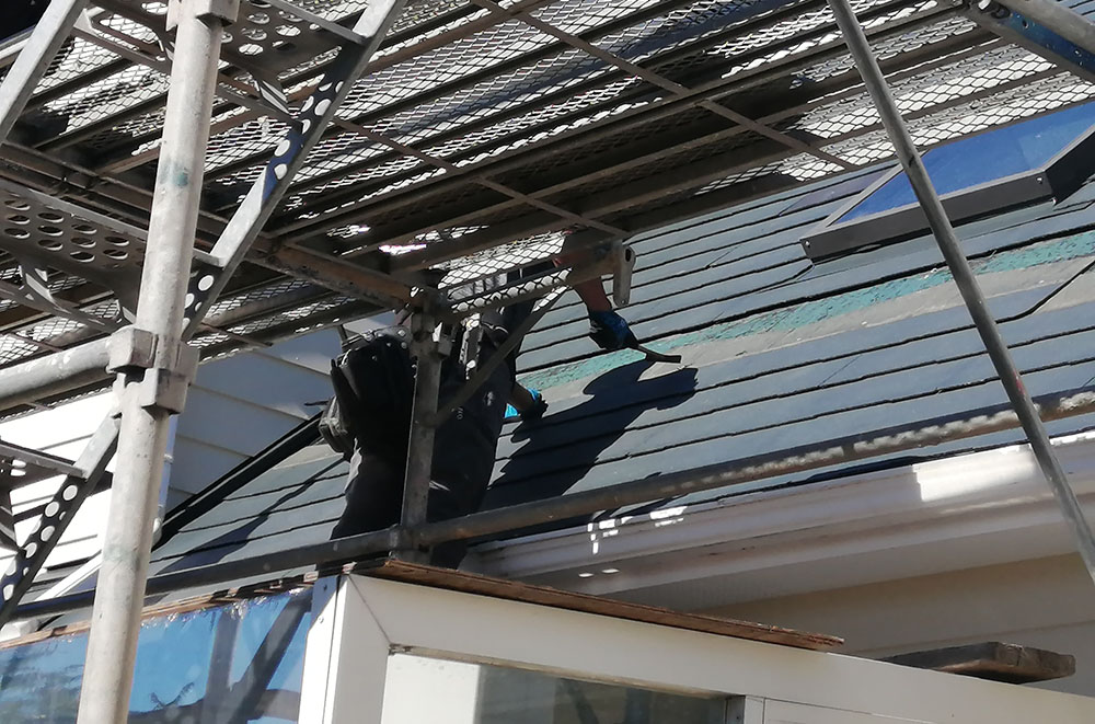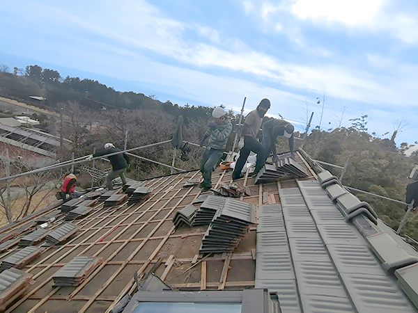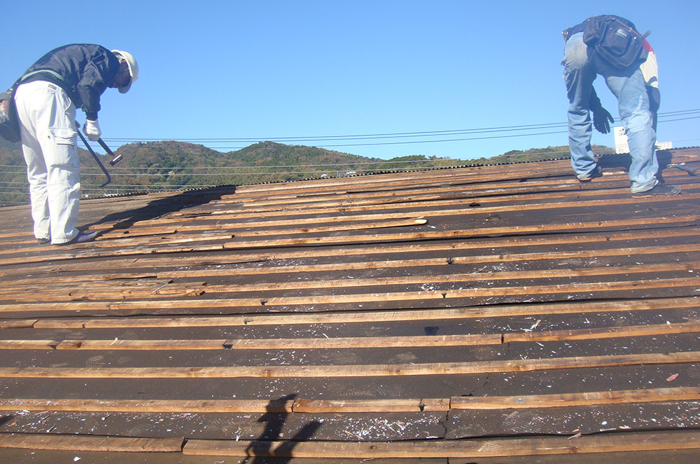 古い屋根材を撤去し新規に屋根材を葺き替える工事になります。