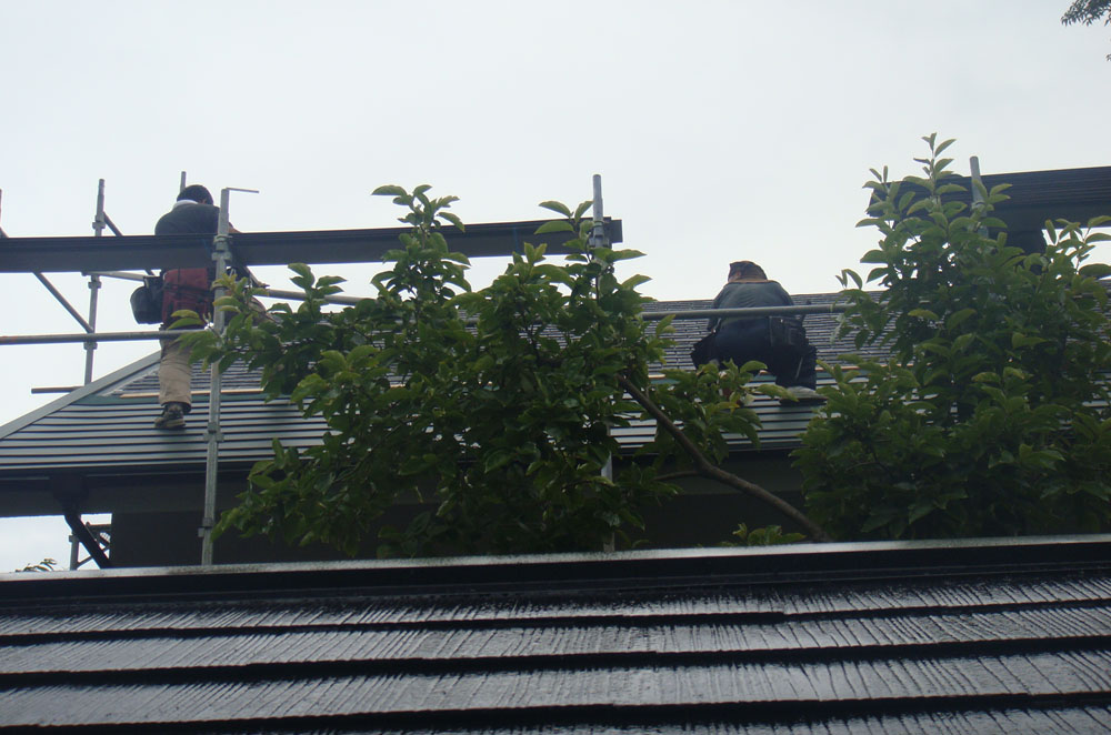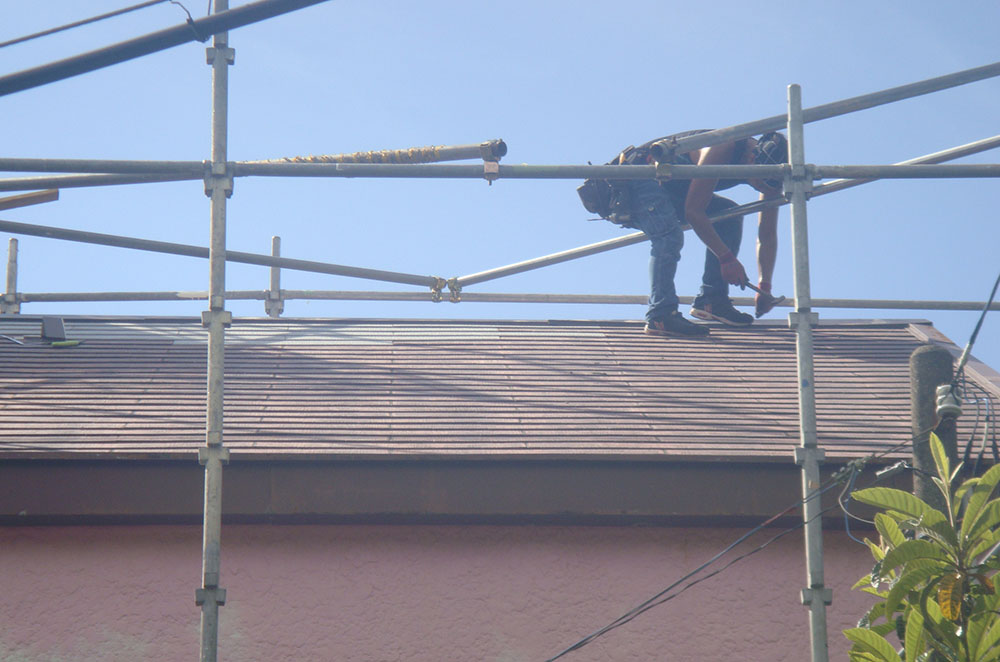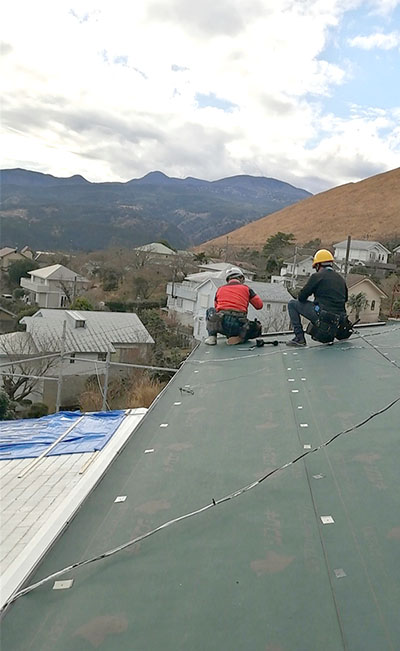 既存屋根の上に新規屋根材を張り付ける工事になります。