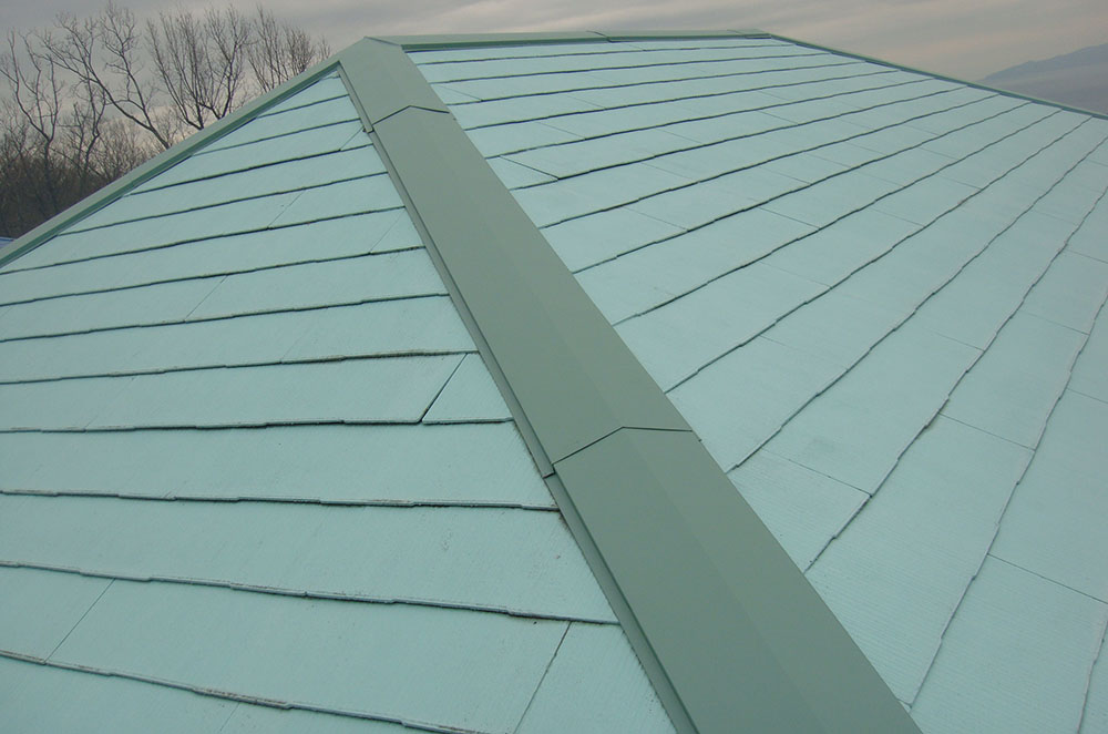施工した屋根材表面には樹脂焼付塗装がしてあることで優れた防水性があり、