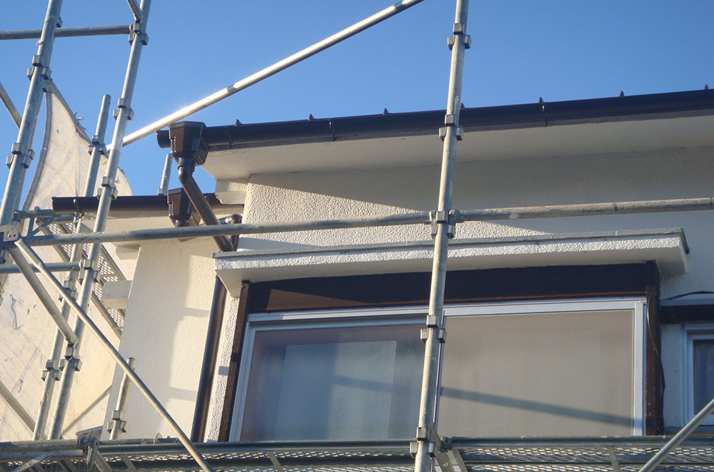 野地板補修と、めけれた破風部にハナガクシ板金工事も行い、屋根と絡む樋も補修しました。